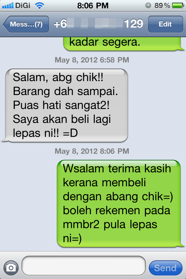 Alhamdulillah, ini adalah promosi kali kedua dari Abang Chik untuk kaki Ray ban Malaysia dan Oakley Malaysia. Sebelum ini, promosi pertama dari Abang Chik iaitu semperna hari Ibu begitu mendapat sambutan hangat. Alhmadullilah semua order telah Abang Chik settlekan dan semua pelanggan yang telah membeli selamat menerima barang mereka. Yang paling Abang Chik, semua mereka begitu berpuas hati dengan kualiti kaca mata hitam yang dibeli. (bukti pelanggan yang membeli dengan Abang Chik berpuas hati, klik sini) dan ternyata reaksi mereka amat gembira sekali.