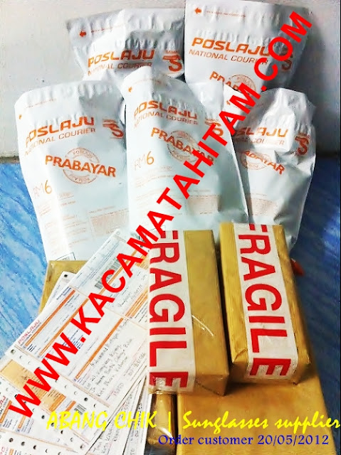 Kami merupakan syarikat sah berdaftar dibawah Suruhanjaya Syarikat Malaysia(SSM). Dibawah merupakan antara order harian kaca mata yang di hantar kepada pelanggan kami. Kami menghantar menggunakan khidmat Pos Laju (kami akan update tracking no setelah item order anda dipos, sila check di sebelah kanan web ini). Penghantaran adalah dilakukan setiap hari.